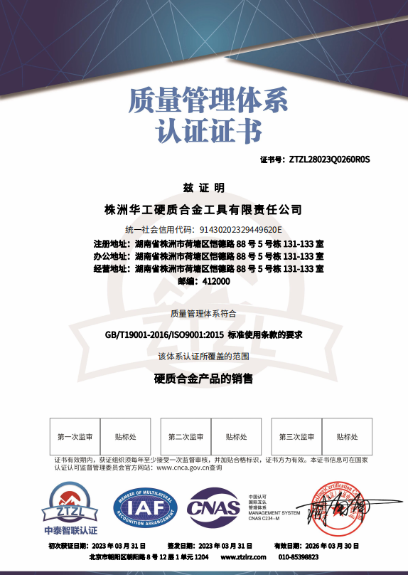 2024年9月1日起正式版權(quán)轉(zhuǎn)移至株洲華工硬質(zhì)合金工具有限責任公司。