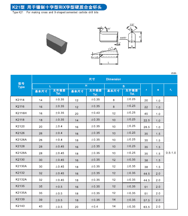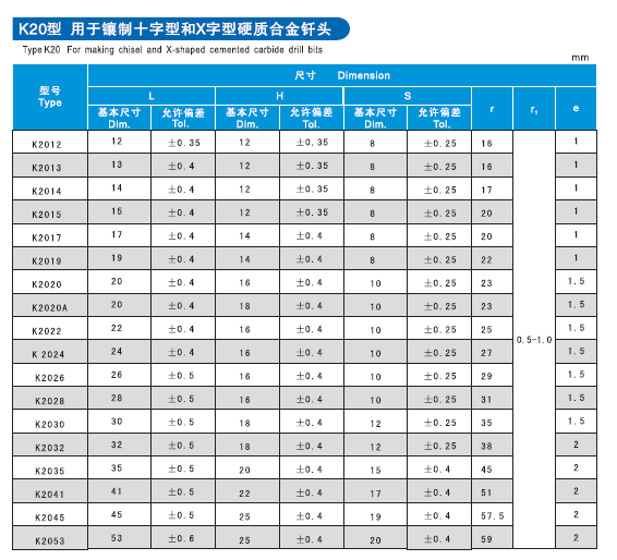 K20、K21型用于鑲制十字與X型硬質(zhì)合金釬頭用釬片