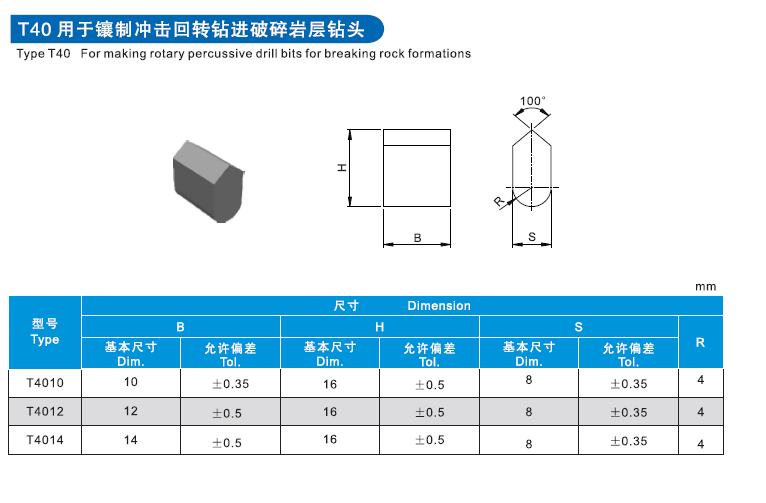 T40用于鑲制沖擊回轉(zhuǎn)鉆進(jìn)破碎巖層鉆頭